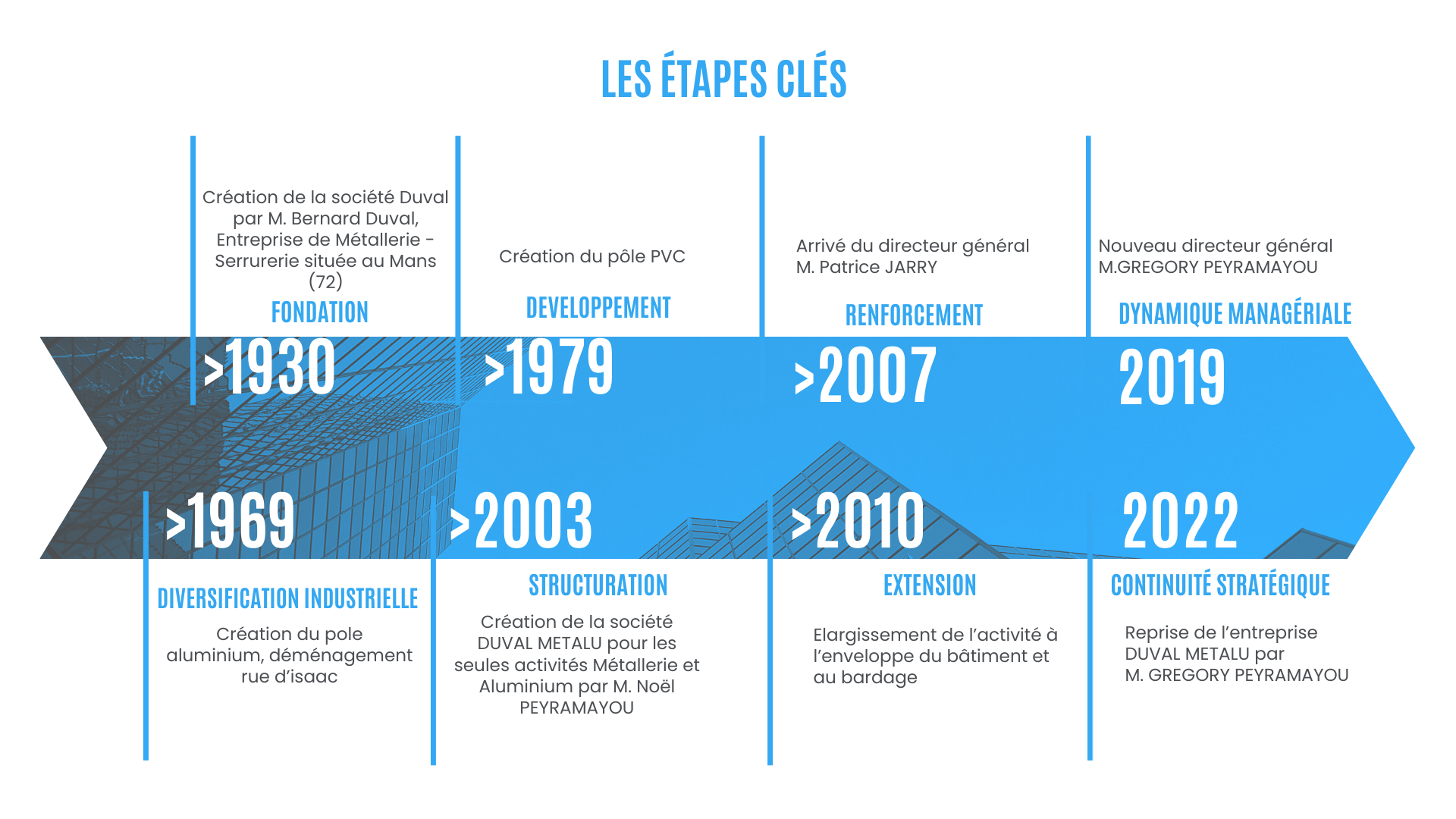 Fondée en 1930 au Mans, Duval Métalu est une entreprise spécialisée dans la transformation et la mise en œuvre du métal. Forte d’un siècle d’expertise, elle intervient sur des projets publics, tertiaires et industriels en garantissant rigueur technique et fiabilité d’exécution.